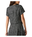 Serve retro vibes in this sweetly cropped top made of tweed and secured by embossed buttons. Featuring a front button closure and a jewel neck.