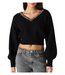 Billowy long sleeves and sparkly stones at the neckline bring the drama to this cropped V-neck pullover that's a glam addition to sweater season.