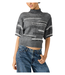 Featuring a rich black multi palette accented with subtle metallic and cream woven details, this short-sleeve sweater offers a distinctive, elegant pattern. Its ribbed mock neckline and hemline provide structure to a relaxed fit, creating a modern and flattering shape.