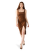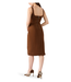 The Milo Dress features a square neck, sleeveless, back zipper closure and faux suede fabric, pleated gather at one hip, slit at side skirt.