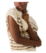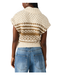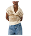 The Paulie Vest features a cream and brown boucle knit "Isle" style pattern with a foldover collar detail and ribbed waistband.