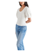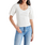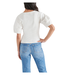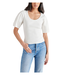 Crisp puff sleeves frame this mixed-media top contrasted with fine ribbing for a close-fitting look and feel.