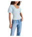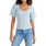 Crisp puff sleeves frame this mixed-media top contrasted with fine ribbing for a close-fitting look and feel.