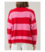 Elevate your outfit with a sweater that adds a pop of personality to any outfit! With large ""Amour"" lettering, a bold red and pink striped color block pattern, and ribbed details, this piece is made to stand out.