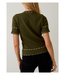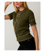 This Round Neck Cardigan features contrast stitching, front buttons and short sleeves.
