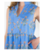 The Tacia Dress is a sleeveless dress featuring a floral pattern.