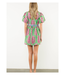 The Tana Dress features a v-neck, puff sleeves, pockets, and a contrast tie at the waist.