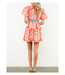 The Taryn Dress features a v-neck, puff sleeves, pockets, and a contrast tie at the waist.