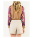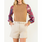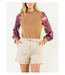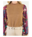 The Taylin Top features a ruffled mock neck, floral contrast sleeves and a relaxed fit.