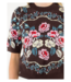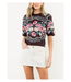 The Taytum Top is a short sleeve knit, featuring a round neck and floral design.