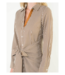 The Thelma Dress features a button-down design with a collar and long sleeves. The front of the dress is tied at the waist, giving it a flattering, cinched look.
