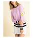 The Toby Sweater features knit bold black and white striped details around the neckline and at the hemline.