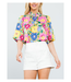 The Truly Top features a ruched mock neck, puff sleeves and a relaxed fit.